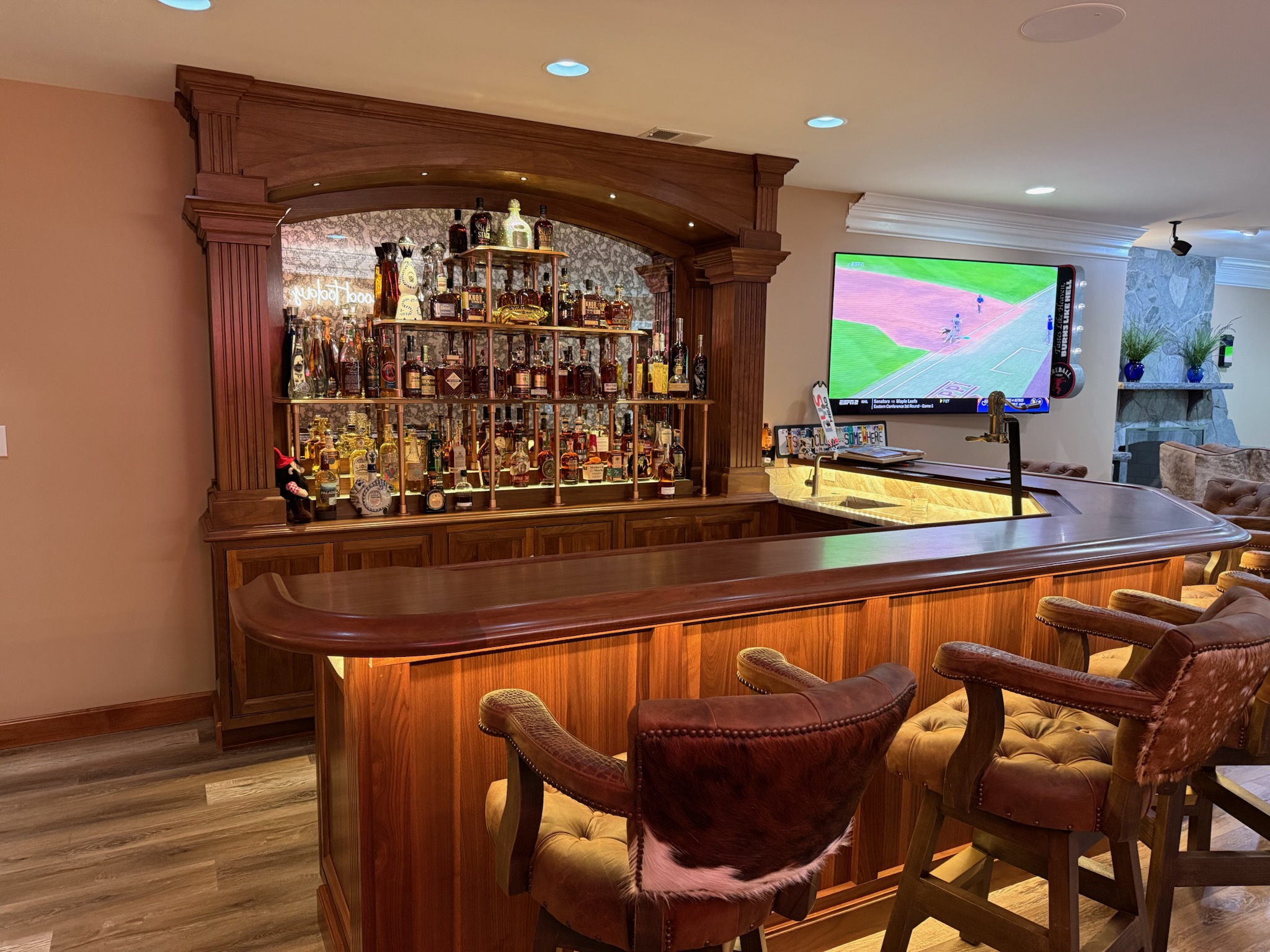 Our finished bar gallery displays both home and commercial bars hand crafted by DIYers, commercial builders and home owners utilizing our bar rail moldings, bar top parts, bar front parts and natural edge bar top slabs.
